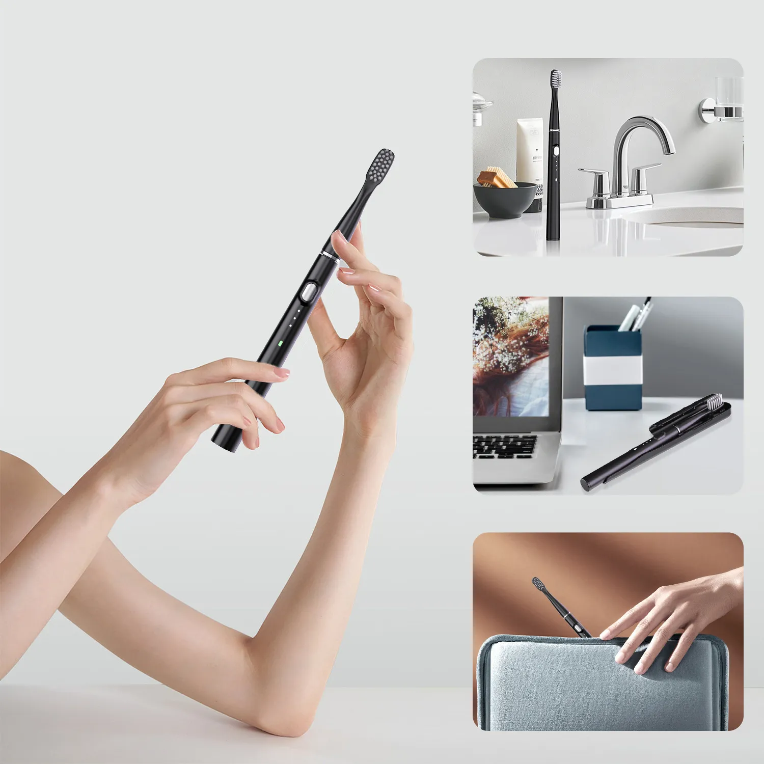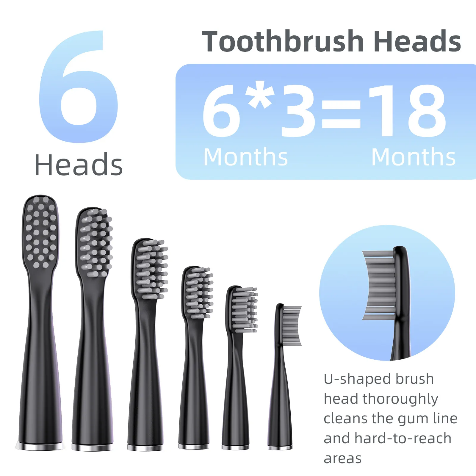 Electric toothbrush X 1PC Brush head X 6PCS Portable case X 1PC Charging cable X 1PC Instruction Manual X 1PCÂ Â Product Image:Â Â