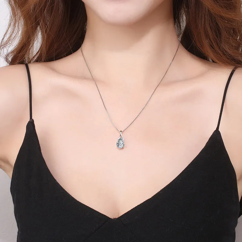 Clavicle Necklace Diamond Angel Tears Drop Pendant Silver Plated Jewelry