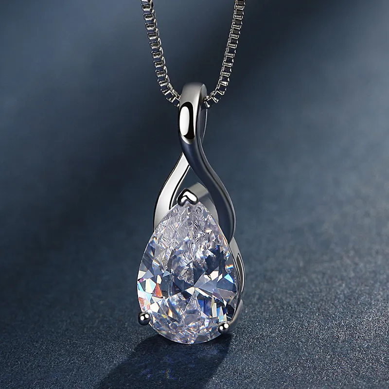 Clavicle Necklace Diamond Angel Tears Drop Pendant Silver Plated Jewelry