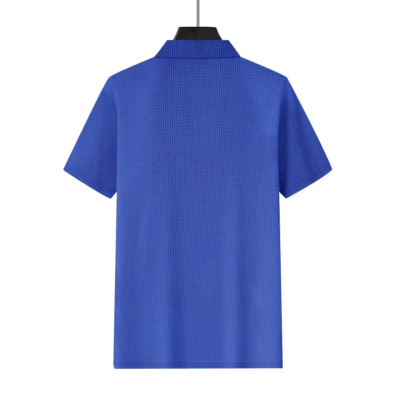Summer Men's Loose Leisure Sports V-neck Waffle Short Sleeve Lapel Polo Shirt Men