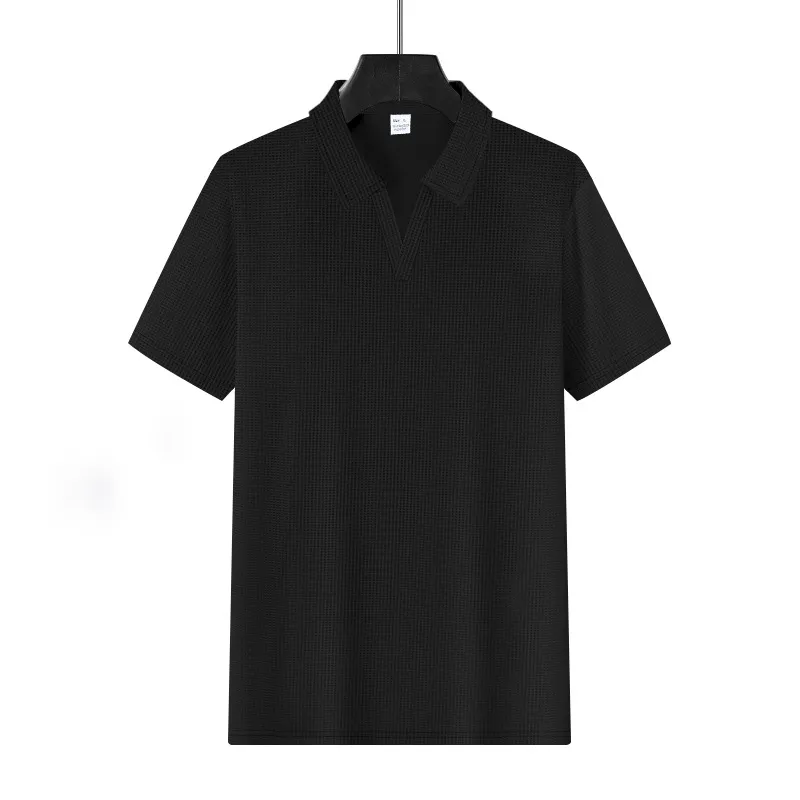 Summer Men’s Loose Leisure Sports V-neck Waffle Polo Shirt – Casual & Comfortable