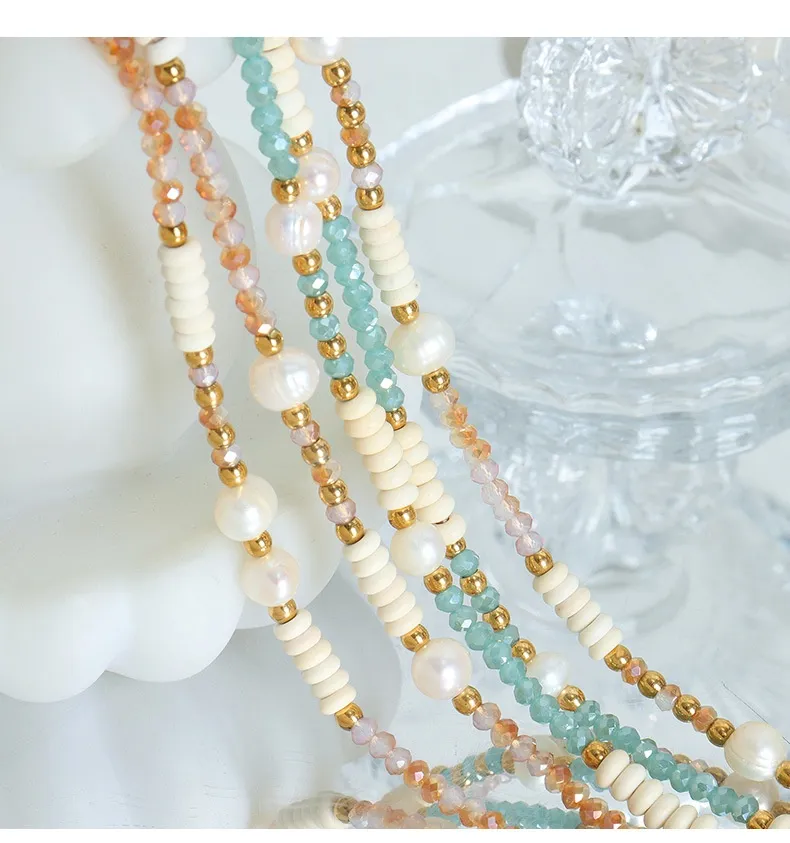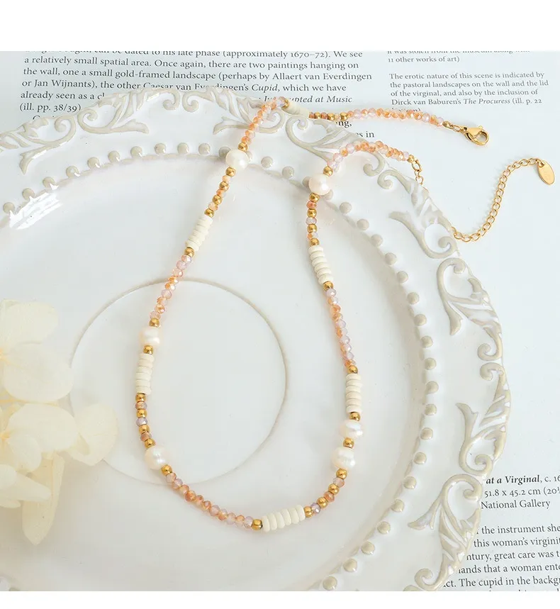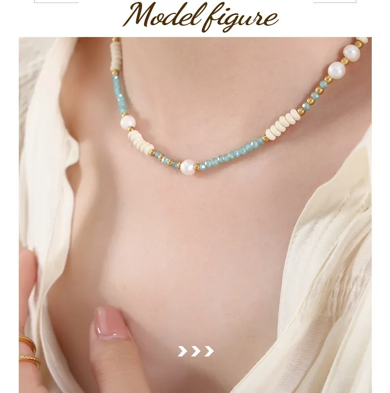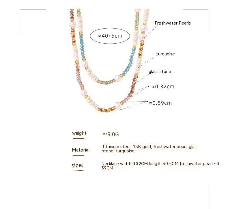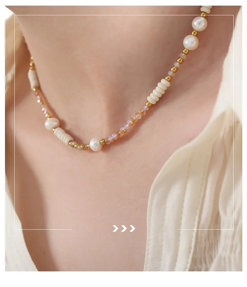 Titanium Colorful Ball Chain Natural Freshwater Pearl Glass Stone Necklace Wild Titanium Steel Bead String Jewelry