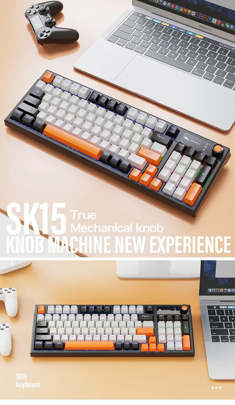 orange],SK15 wired mechanical keyboard mixed light green shaft [Autumn Water Blue]]