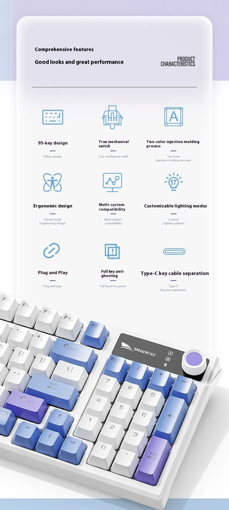 Enhance your gaming experience with this Wired Mechanical Keyboard featuring a multifunctional knob. Designed for e-sports players and gaming enthusiasts, it offers precise key response, durable switches, and a tactile typing experience that ensures maximum performance during intense gaming sessions.