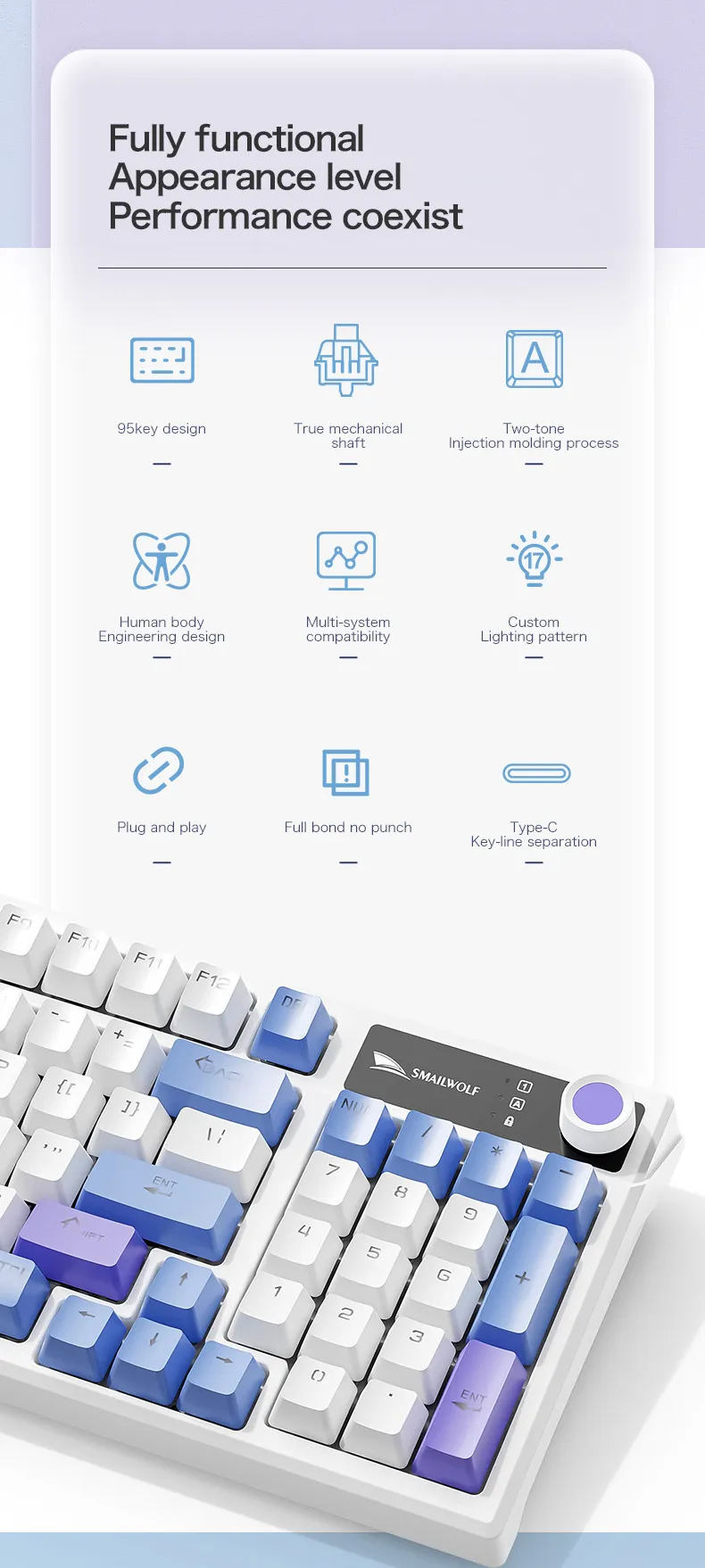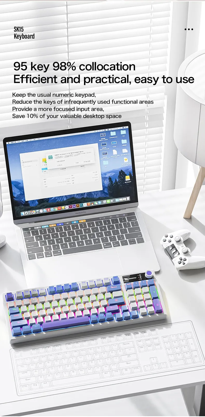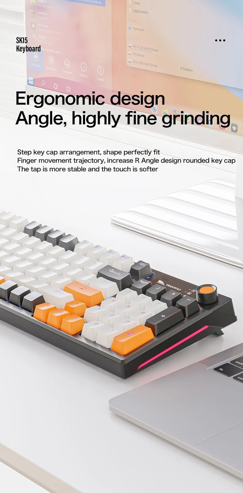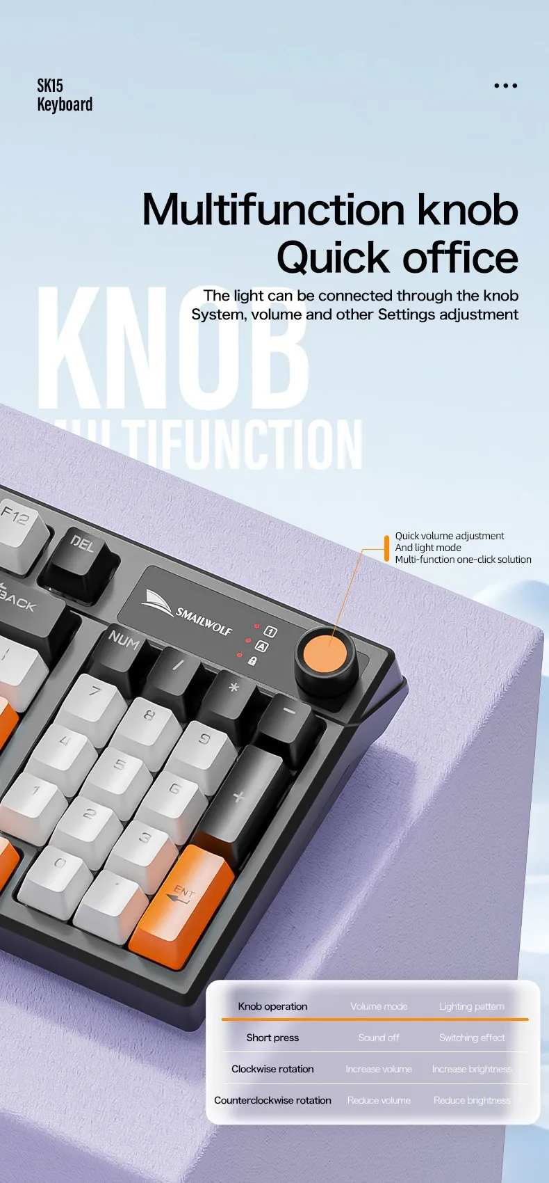 The built-in rotary knob allows you to adjust volume, switch lighting modes, or customize functions on the fly. This convenient feature gives gamers and professionals quick access without leaving the keyboard, improving efficiency for both gaming and productivity tasks.
