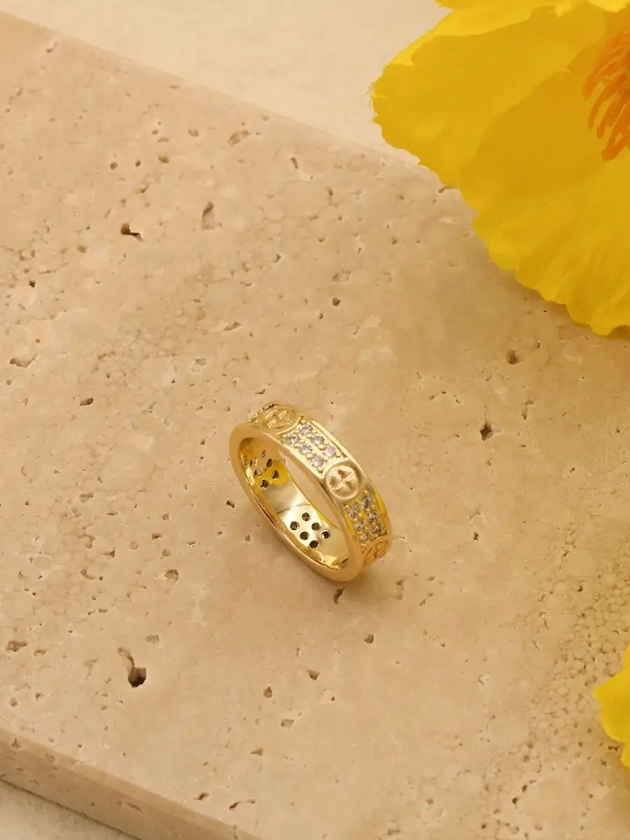 How to Wear the Inlaid Zircon Classic Gold Color Ring
