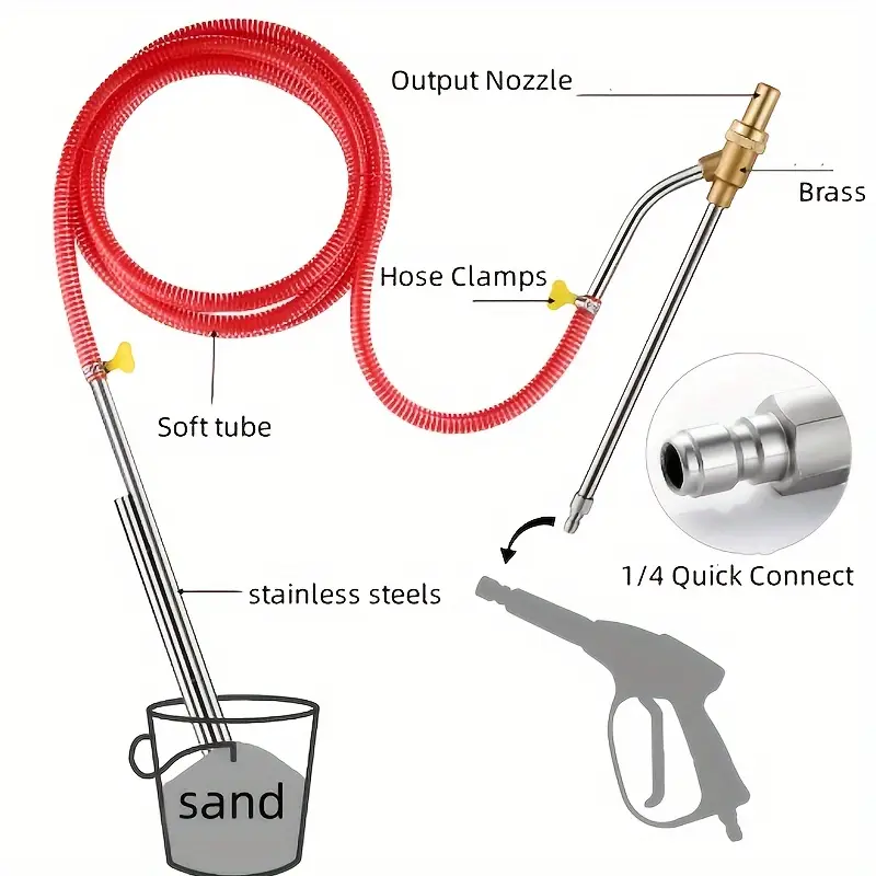 Compatible with most standard pressure washers, this sandblasting attachment kit is designed for seamless integration, allowing you to start your projects right away.