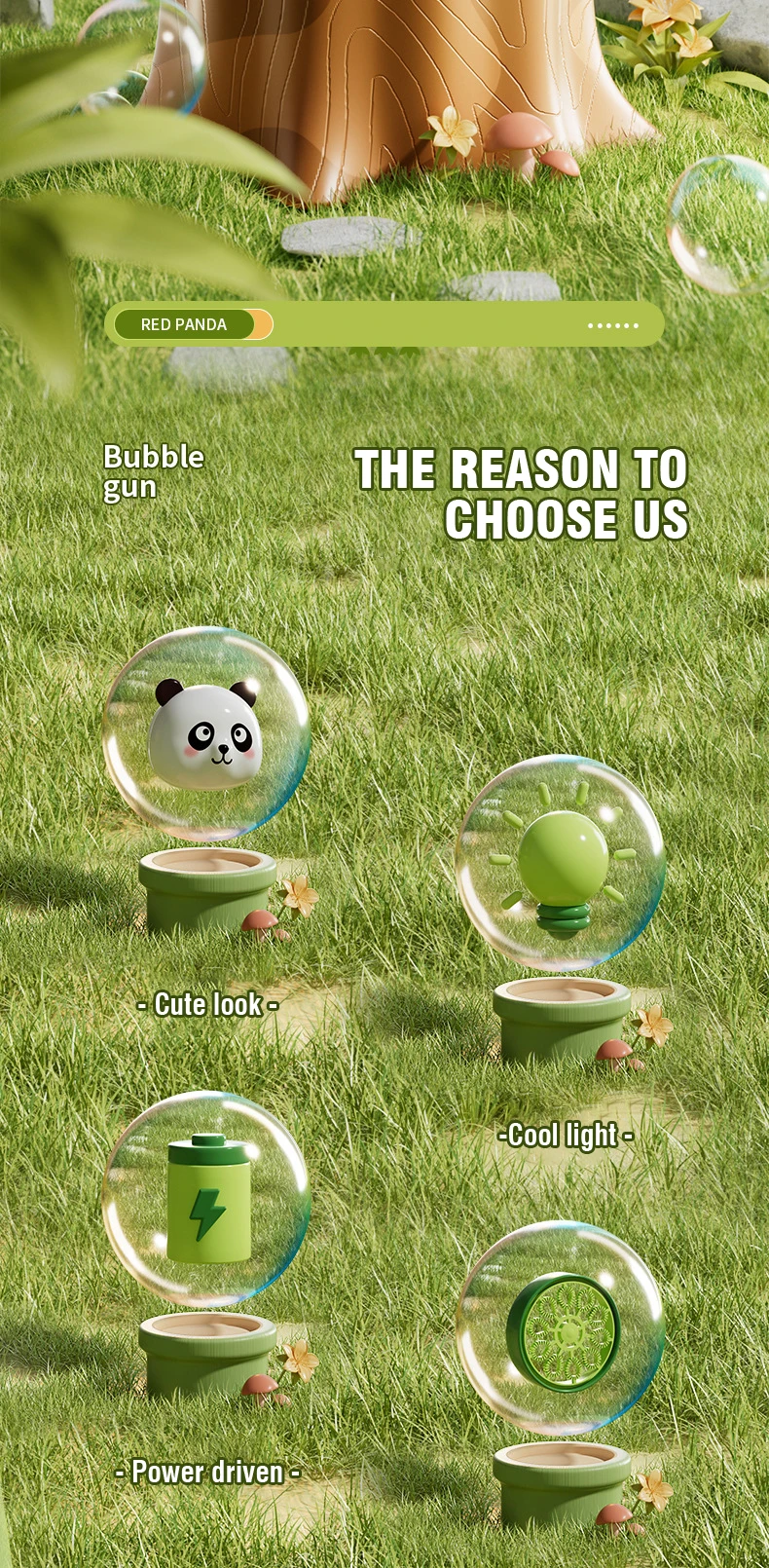 - The bubble gun features a cute and engaging panda design that kids will love. Its playful appearance makes bubble blowing even more enjoyable for children.