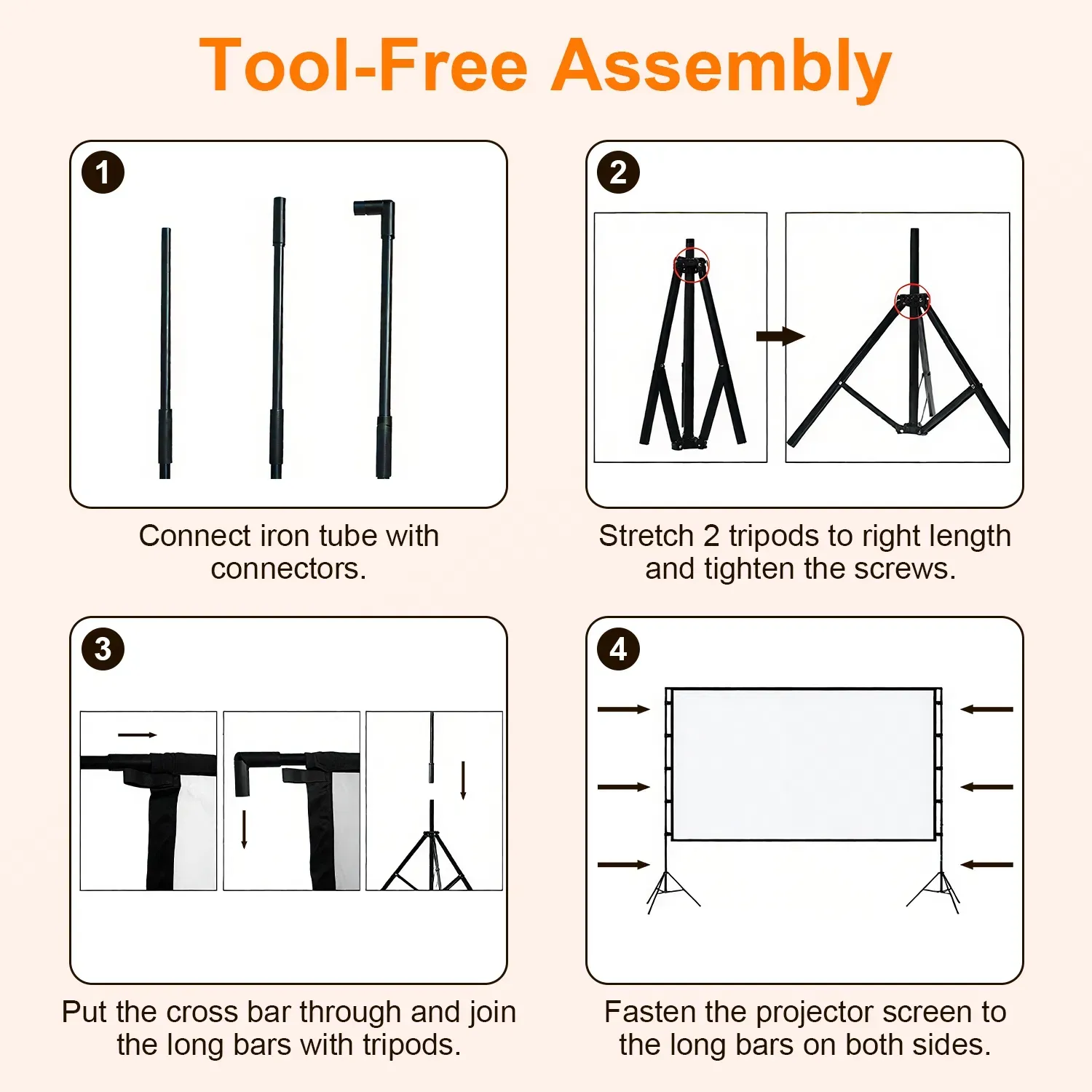 *Wrinkle-Free Movie Screen*:Crafted from thickened 150GSM polyester milk silk,the foldable wrinkle-free movie screen remains flat and