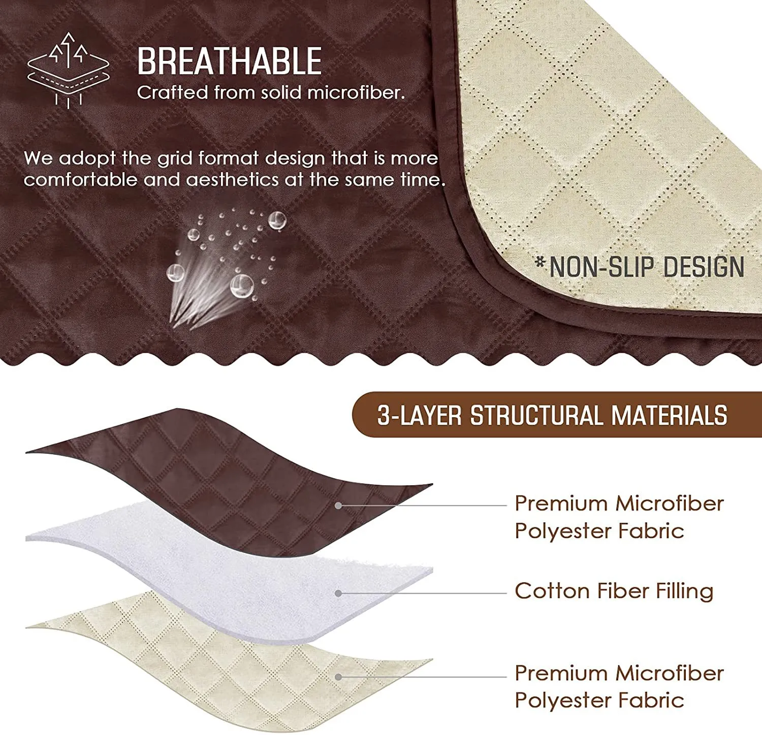 Water-Resistant & Durable:Â The recliner sofa cover consists of 3-layered quilted fabric, thick microfiber, and thick poly foam filling for extra comfort and softness. A 100% waterproof recliner sofa cover protects your furniture from everyday wear, tear, and stains.