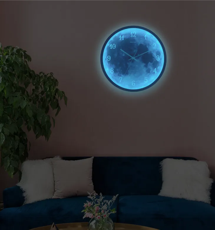 The 12-Inch Wall Clock for Home Decoration with its Blue Moon Sound Control and Luminous