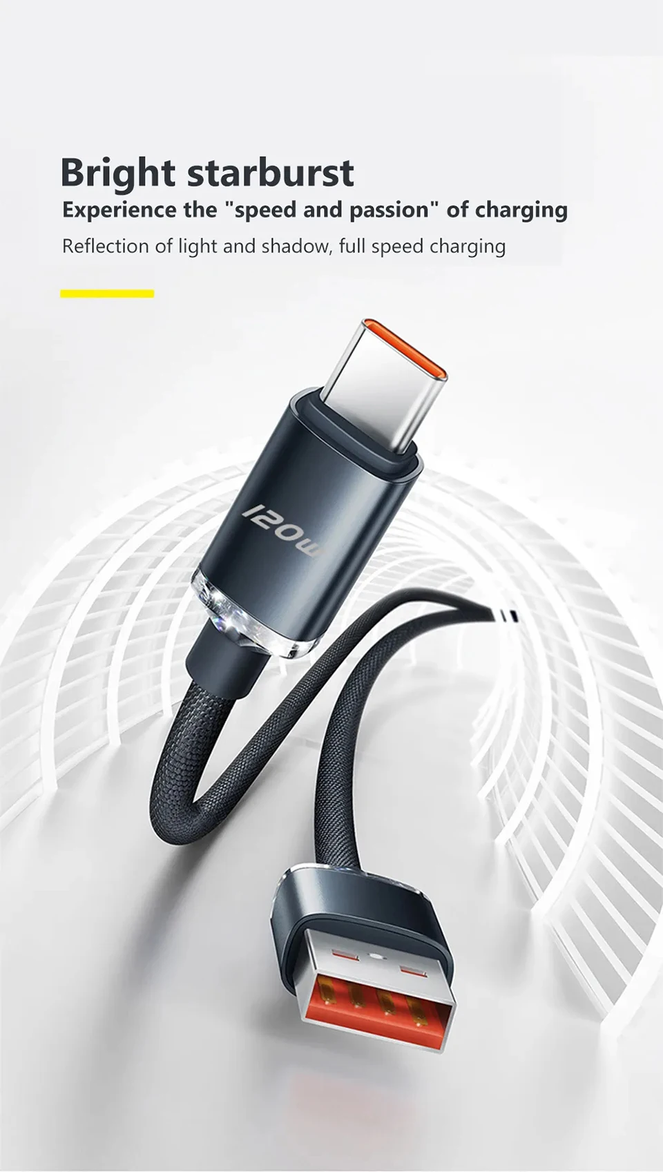 120W 6A Fast Charge USB Type-C Cable - Quick Charge Data Cable