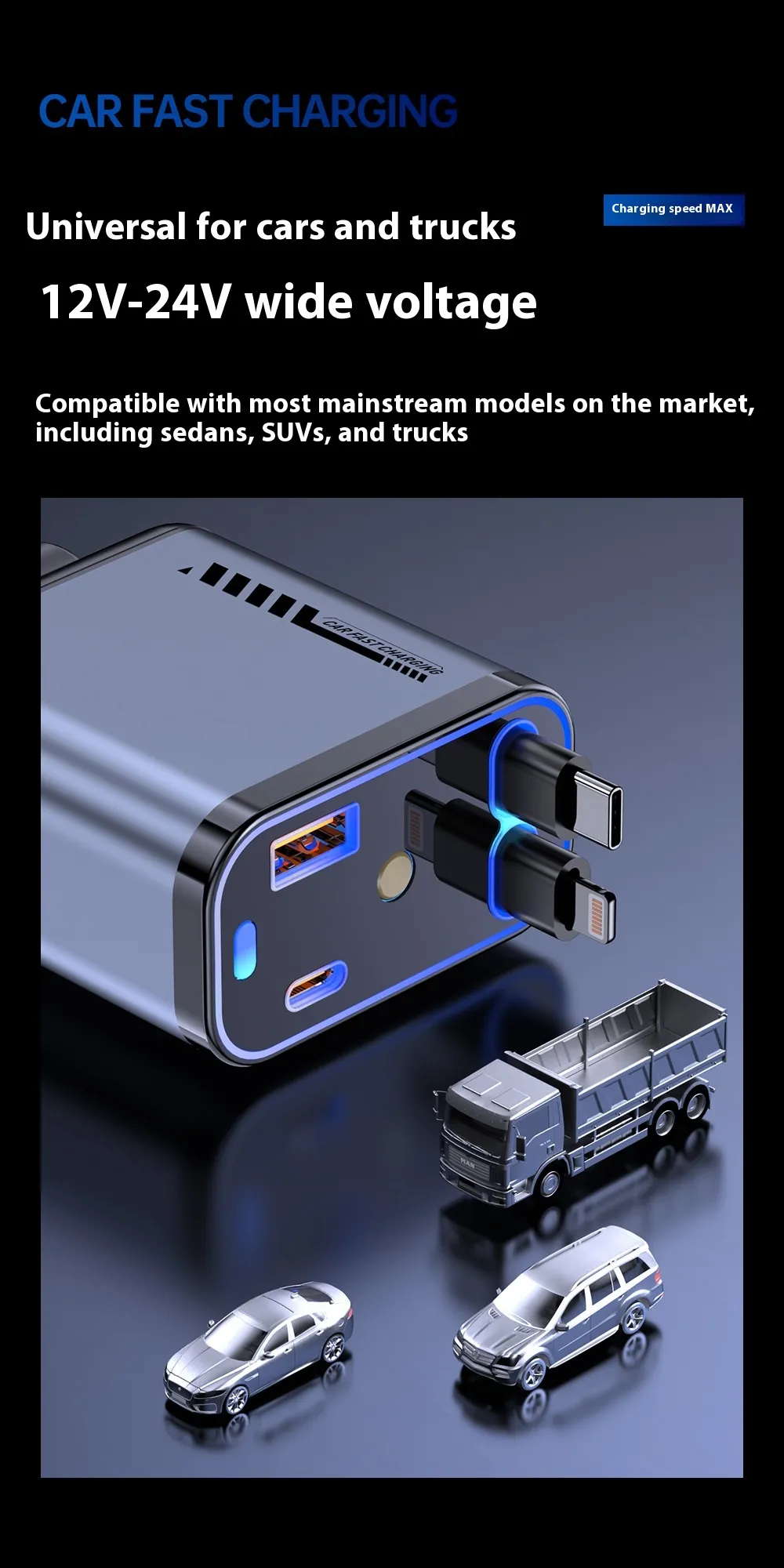 Compact and Portable: Despite its powerful output, the charger is lightweight and compact, making it easy to carry for