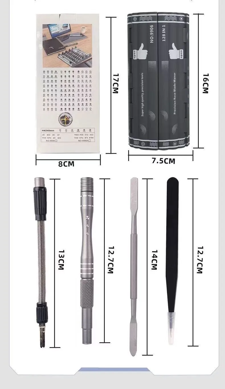 The 128 in 1 Screwdriver Set is a comprehensive tool kit designed to handle an incredibly wide range of fastening and repair tasks. Whether you are a DIY hobbyist working on home projects, a professional technician dealing with electronic devices, a mechanic performing precision work, or someone who simply wants a reliable all‑in‑one toolkit for everyday maintenance, this set covers your needs. Featuring an extensive collection of screwdriver bits, specialty drivers, adapters, and accessories, this screwdriver set empowers users to work confidently and efficiently across diverse tasks—from assembling furniture and tightening loose screws to repairing mobile phones, laptops, appliances, gaming consoles, and more.