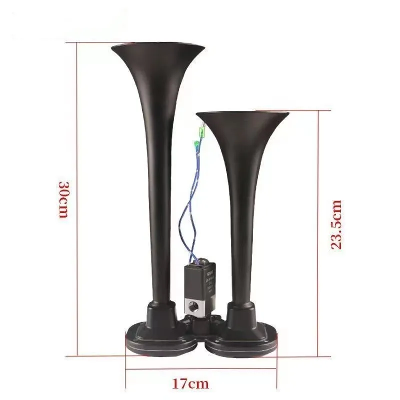 The dual trumpet air horn produces an incredibly loud and commanding 300DB sound, ensuring you are heard in any situation.