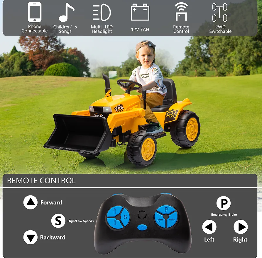 Product Name:12V Kids Ride on Tractor Electric Excavator Battery Powered Motorized Car for Kids Ages 3-6, with Front Loader, Digging Handle, Remote Control, & Bright Headlight, Yellow