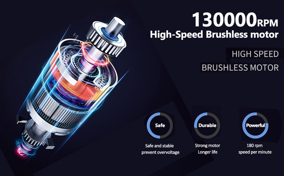 Fan use high speed brushless motor,its highestrotation speed can reach up to 130000 RPM andmaximum wind speed can reach 52m/s!!!