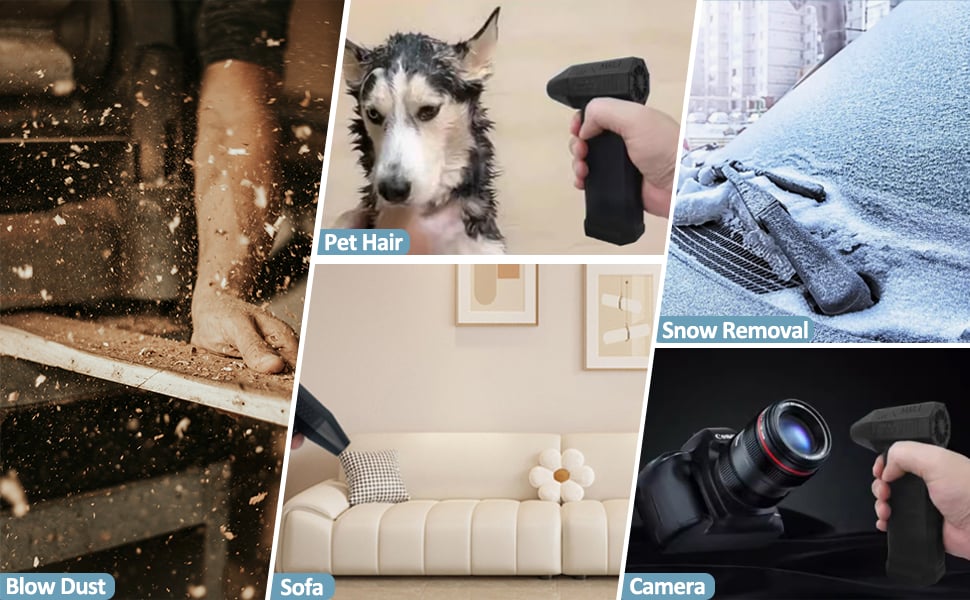- 【Unlimited possibilities】Use our turbo fan in any scenario you prefer: whether it's to remove dust from computers, keyboards, or indoor furniture, or snow and fallen leaves on cars, clean the ground when camping, inflate inflatable mats, etc., it fully covers your various life needs.
