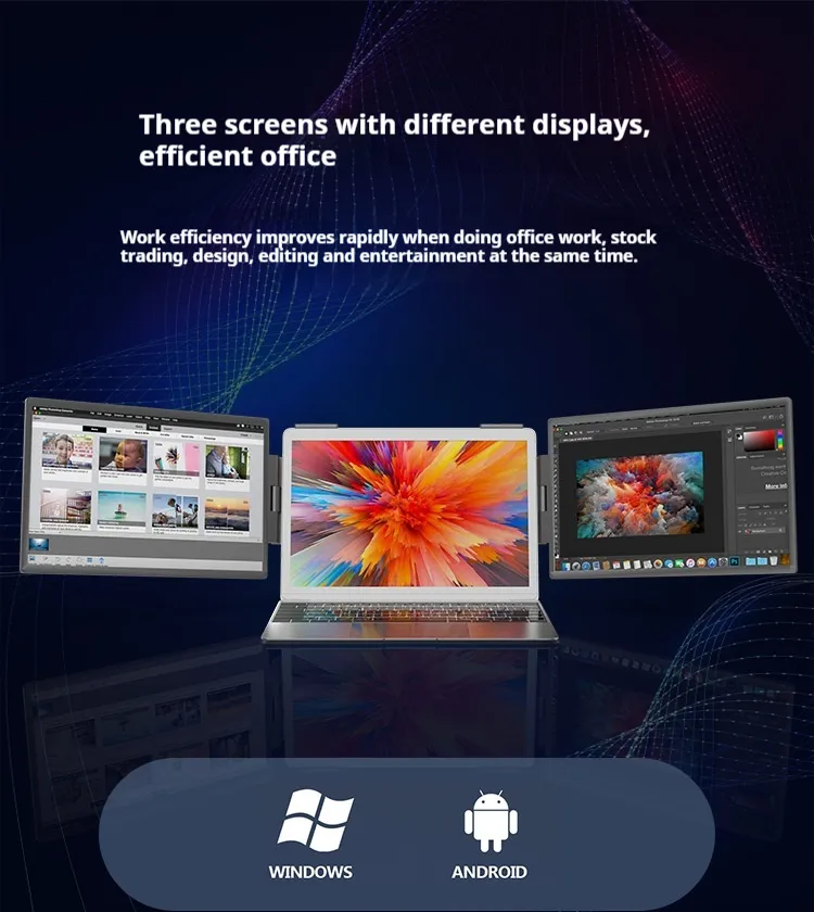 The 14-inch Dual-Screen Portable Monitor Laptop with Wall-Mounted External Expansion Screen is a game-changer for anyone looking to enhance their work or entertainment setup. Its portability, ease of use, and ability to significantly boost productivity make it a must-have for busy professionals, students, gamers, and anyone who values efficiency. Whether you're at home, in the office, or on the move, this dual-screen monitor ensures that you always have the space and flexibility you need to get more done.