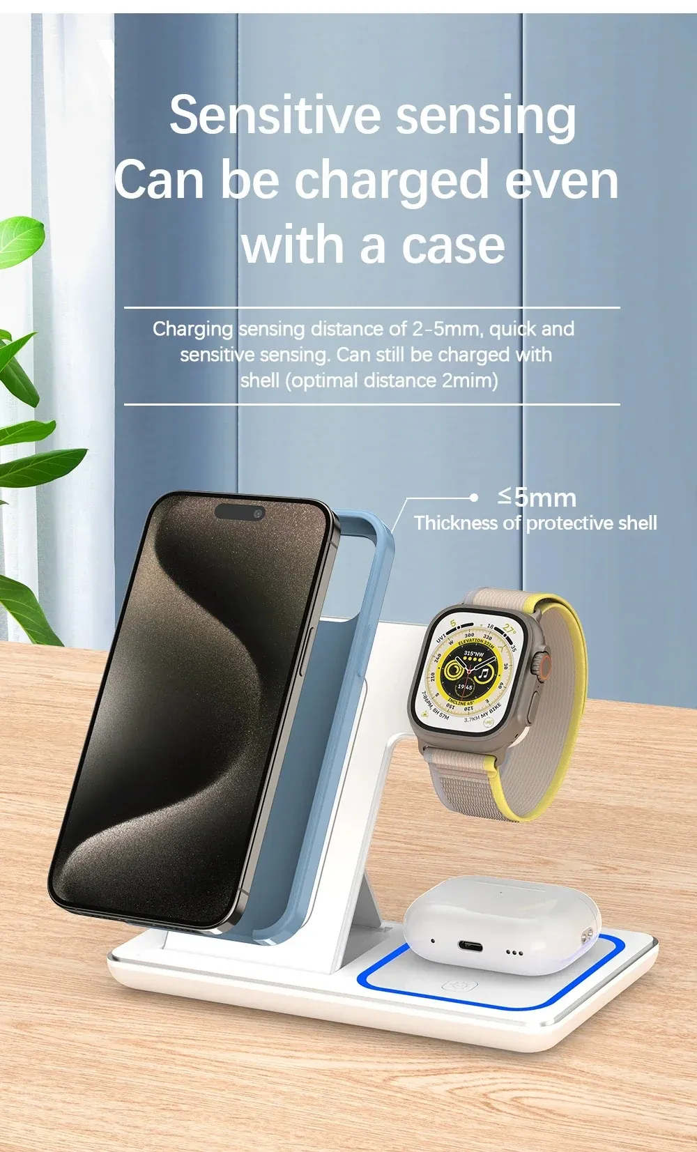 15W 3 In 1 LED Fast Wireless Charger Stand