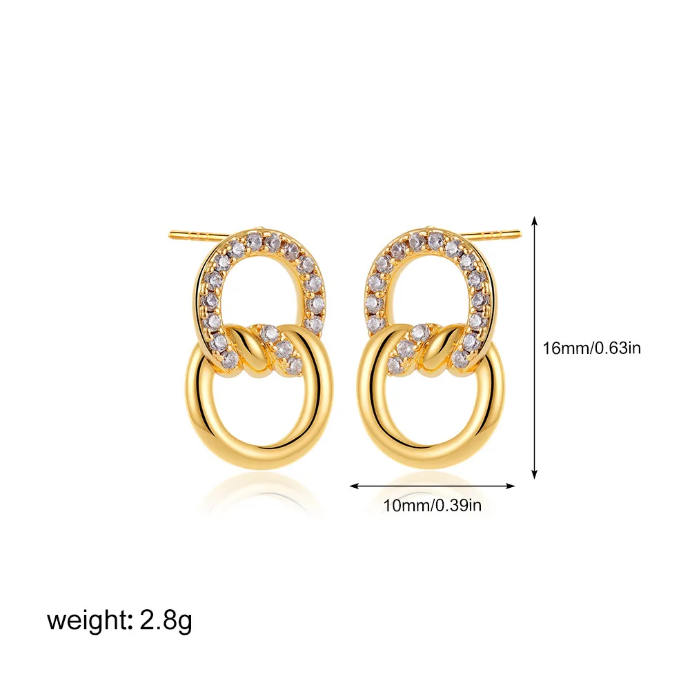 18K Gold Double D Ring Micro Inlaid Zircon Bends And Hitches Stud Earrings