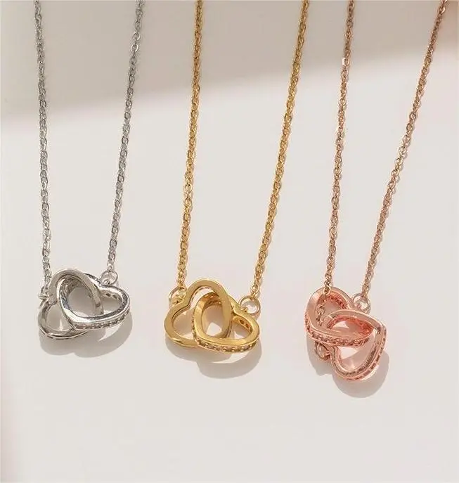 Color: 322 heart-to-heart titanium steel necklace-gold, 322 heart-to-heart titanium steel necklace-Silver, 322 heart-to-heart titanium steel