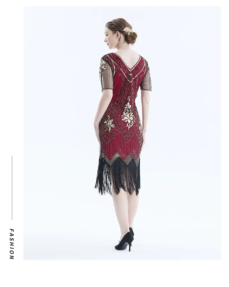Consider the length of the dress based on your personal preferences and the event. Flapper dresses were traditionally knee-length, but there are also options for floor-length gowns or mid-calf designs. Choose the length that feels most comfortable and flattering for your body type and the event you're attending.