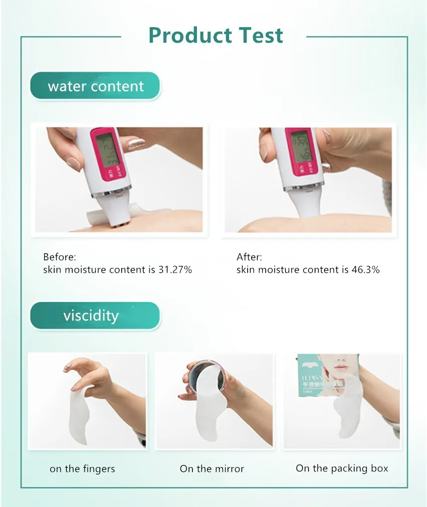 1,Water Content: Before Test: skin moisture content is 31.27% After Test: skin moisture content is 46.3% 2,Strong viscidity: it has strong viscidity.