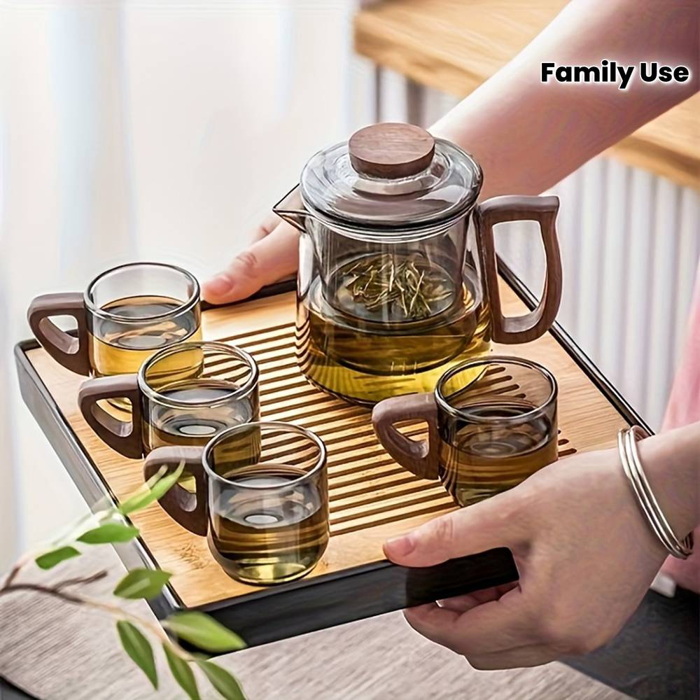 The 1set Luxury Smoke Grey Glass Tea Set is the perfect blend of style, functionality, and elegance. Featuring a beautifully crafted teapot with a wooden handle and four matching cups, this set is designed to elevate your tea experience. Whether you're hosting a family gathering or celebrating special occasions like Halloween, Christmas, Valentine's Day, or Thanksgiving, this luxury tea set is perfect for entertaining guests. Its heat-resistant glass construction and sophisticated smoke grey design make it an eye-catching centerpiece for any table.