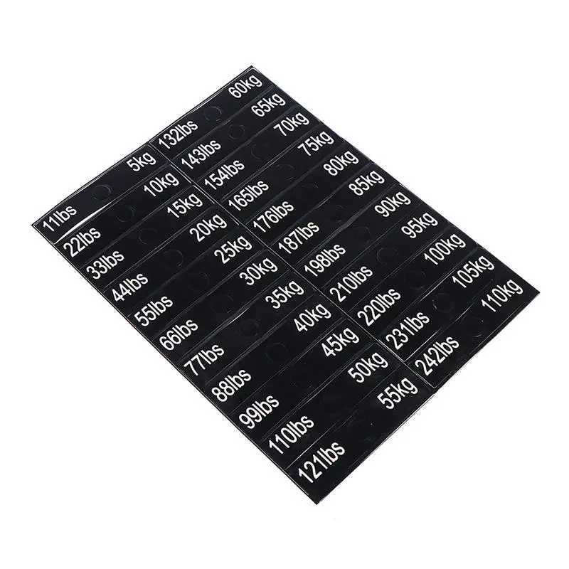 The 1 Sheet Gym Equipment Weight Sticker Labels Power is an essential accessory for gym enthusiasts, trainers, and fitness centers looking to keep their equipment well-organized and clearly labeled. These high-quality, durable weight labels make it easy to identify the correct weights for your workouts and ensure that your gym environment stays tidy and efficient. With a professional look and easy-to-read design, these weight sticker labels provide a practical solution for weight management in home gyms, commercial fitness centers, or training studios.