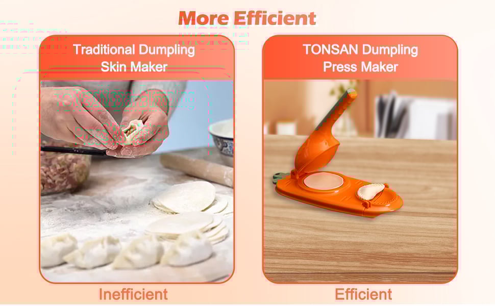 Unlike traditional manual folding that requires practice and patience, this 2‑in‑1 tool ensures professional‑looking dumplings with every press. Its ergonomic handle and smooth operation make it comfortable for repetitive use, while the easy‑clean design means you can focus on cooking, not cleanup. Whether you’re making pork, vegetable, chicken, or sweet dumplings, this tool lets you create them faster and more efficiently.