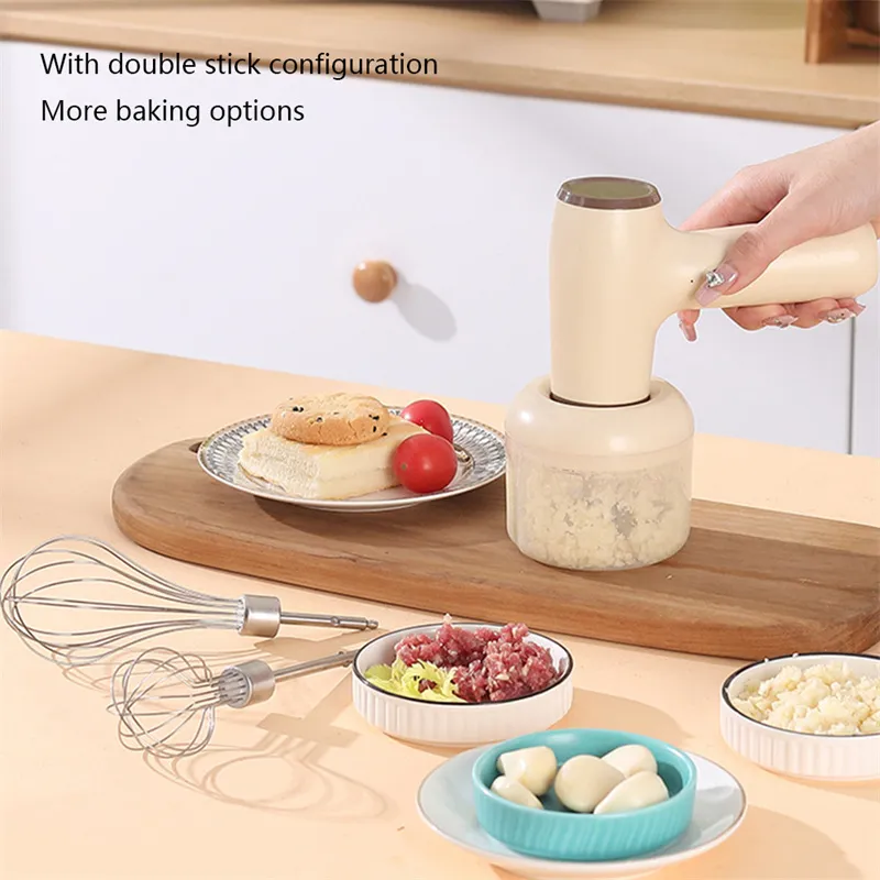 2 In 1 Electric Garlic Chopper USB Rechargeable Vegetable Chili Meat Ginger Masher Handheld Multipurpose Kitchen Gadgets