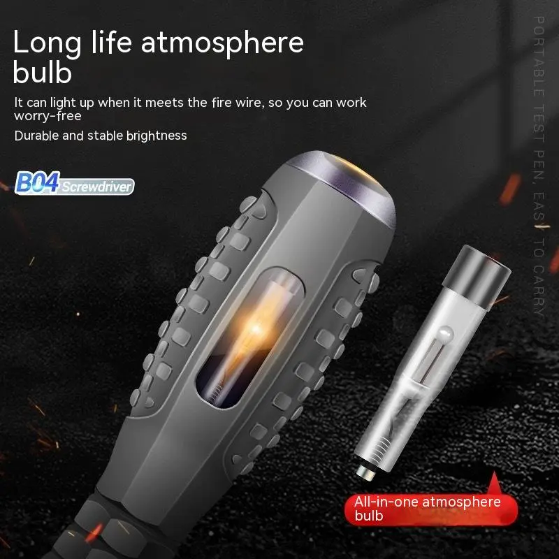 Beyond common screwdriver functionality, this device features an integrated electricity detector that identifies live electrical wires without making direct contact. The detector warns users of live voltage in walls, outlets, switches, or conduits, supporting safer work practices and reducing the risk of accidental shock or damage. This added capability enhances safety during renovation, maintenance, or installation activities.