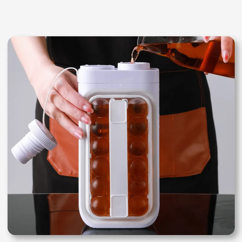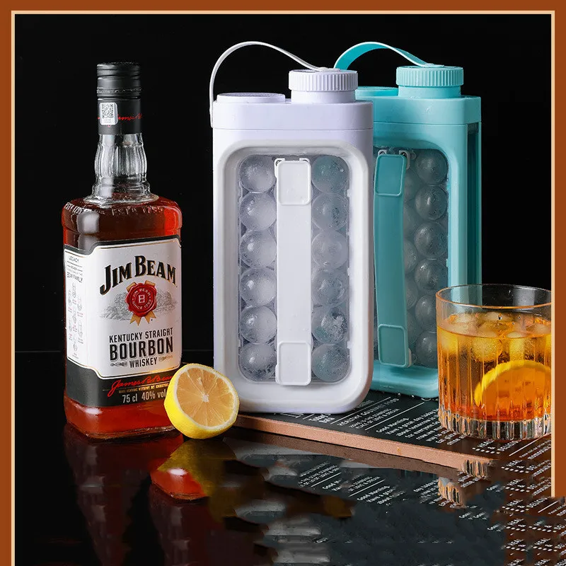 Beat the summer heat with the innovative 2-in-1 Portable Quick Release Ice Ball Cold Kettle. This clever kitchen gadget combines functionality and style, making it the perfect tool for creating refreshing, chilled drinks at home, in the office, or on the go. Featuring an integrated ice ball maker and a cold kettle, this multipurpose device ensures your drinks stay cool, flavorful, and visually stunning.