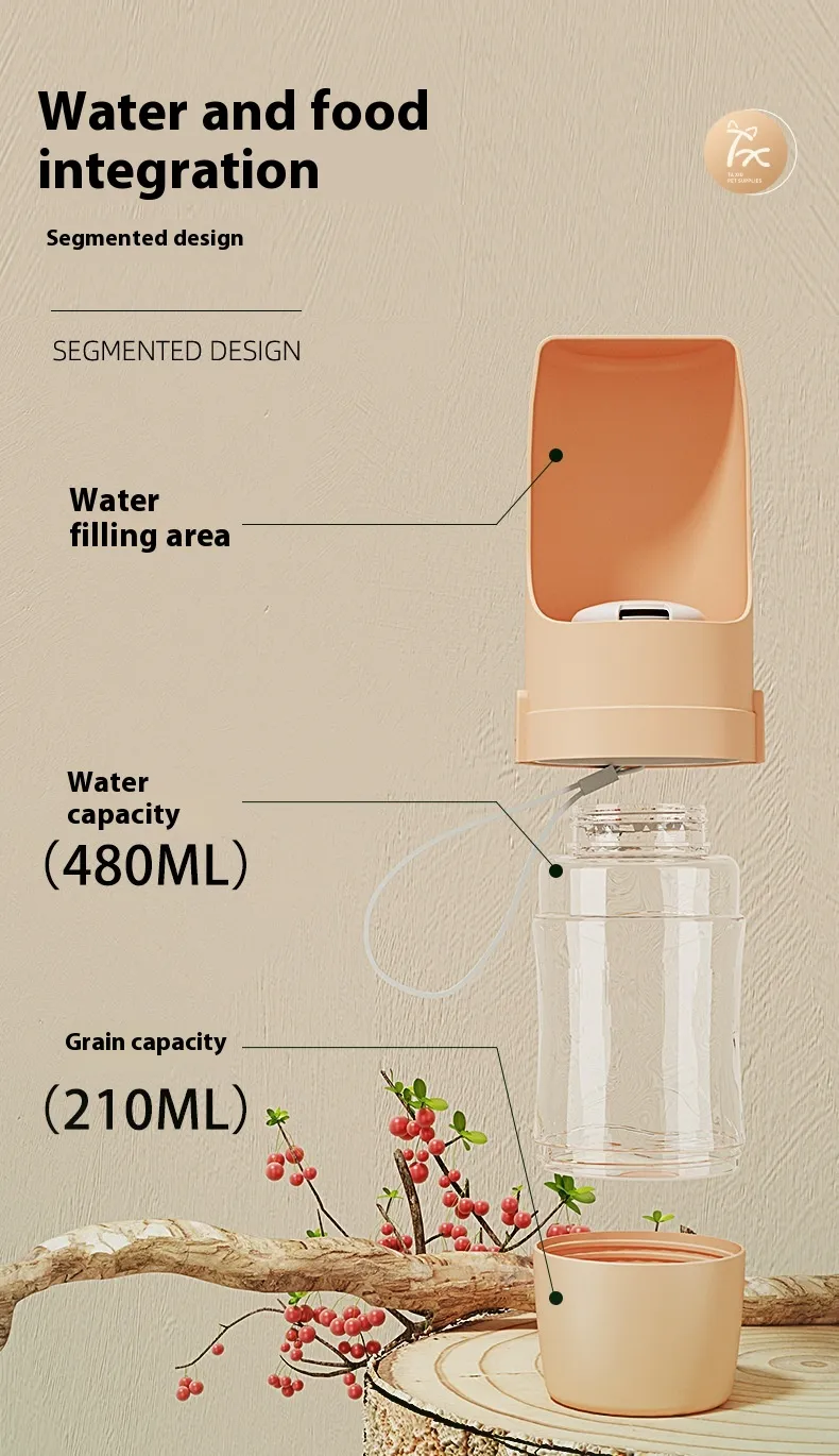The 2-in-1 functionality separates water and food storage, making it easy to carry both in a single bottle. No need for multiple containers when you're out with your pet!