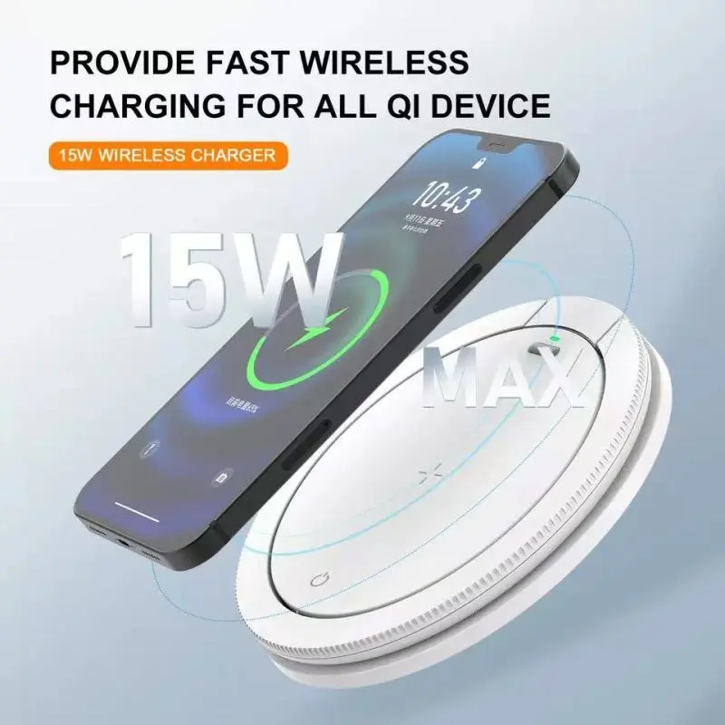 2-in-1 Functionality: Combines a portable LED night light with a 15W wireless fast charging station for phones, offering