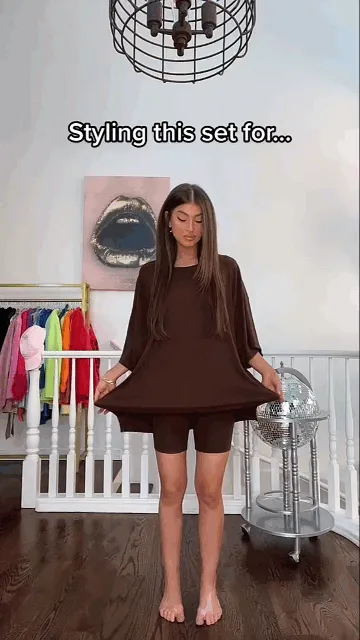 Complete Your On-Trend Look With The Oversized Tee Biker Short Set In This Summer!