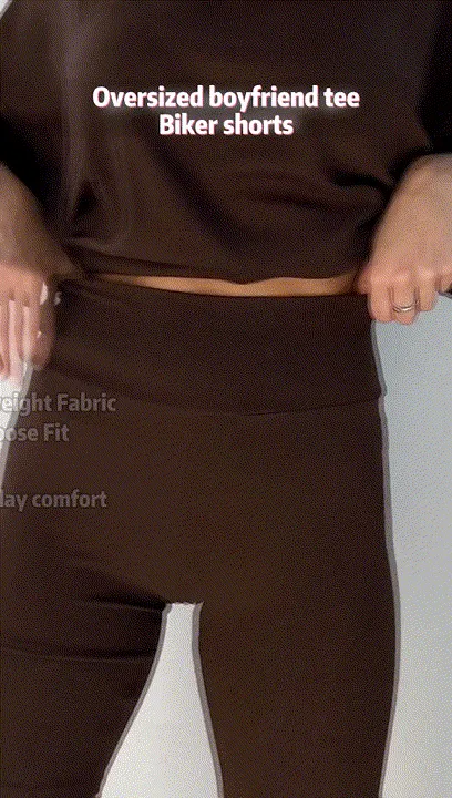 - This oversized boyfriend tee comes with a pair of matching biker shorts, sexy chic and energetic style.