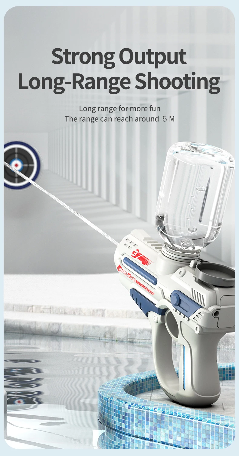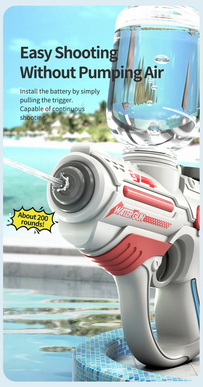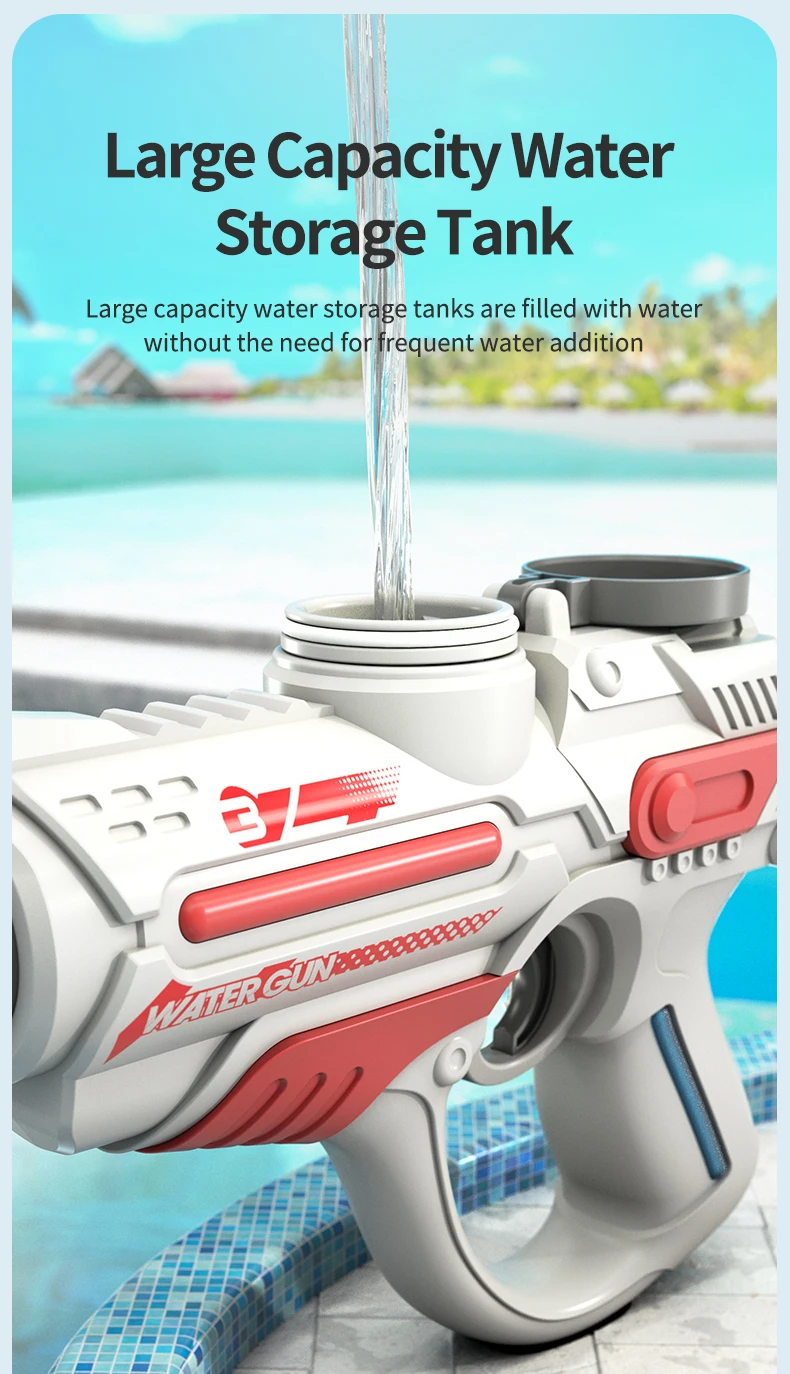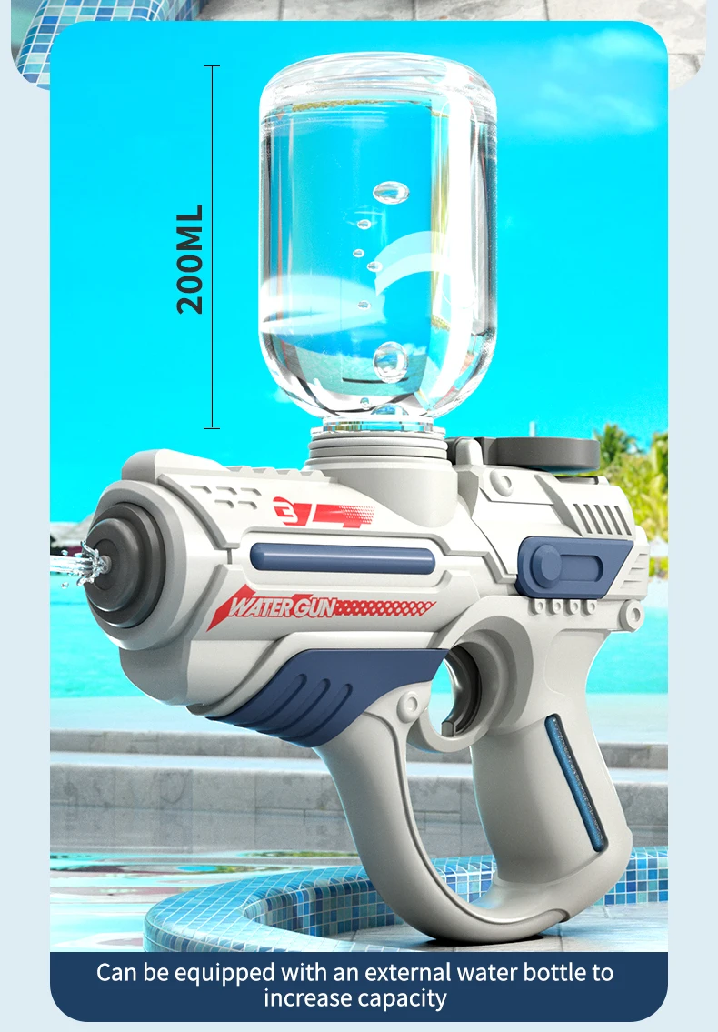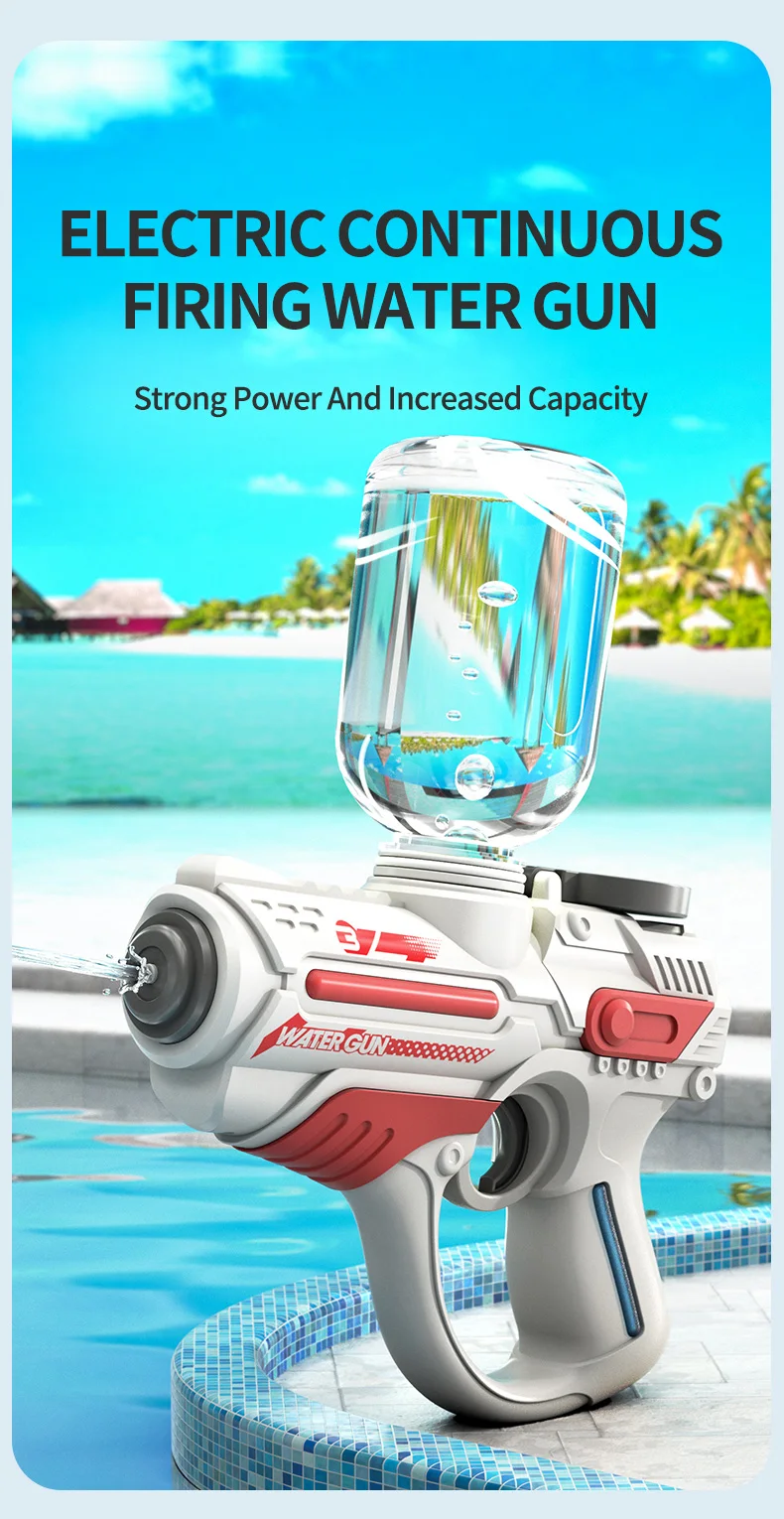 This 2023 electric automatic water gun is designed for high-pressure water play, making it perfect for outdoor, beach, and swimming pool fun. With a large-capacity reservoir, it ensures extended playtime for children, providing a thrilling summer toy experience for boys.