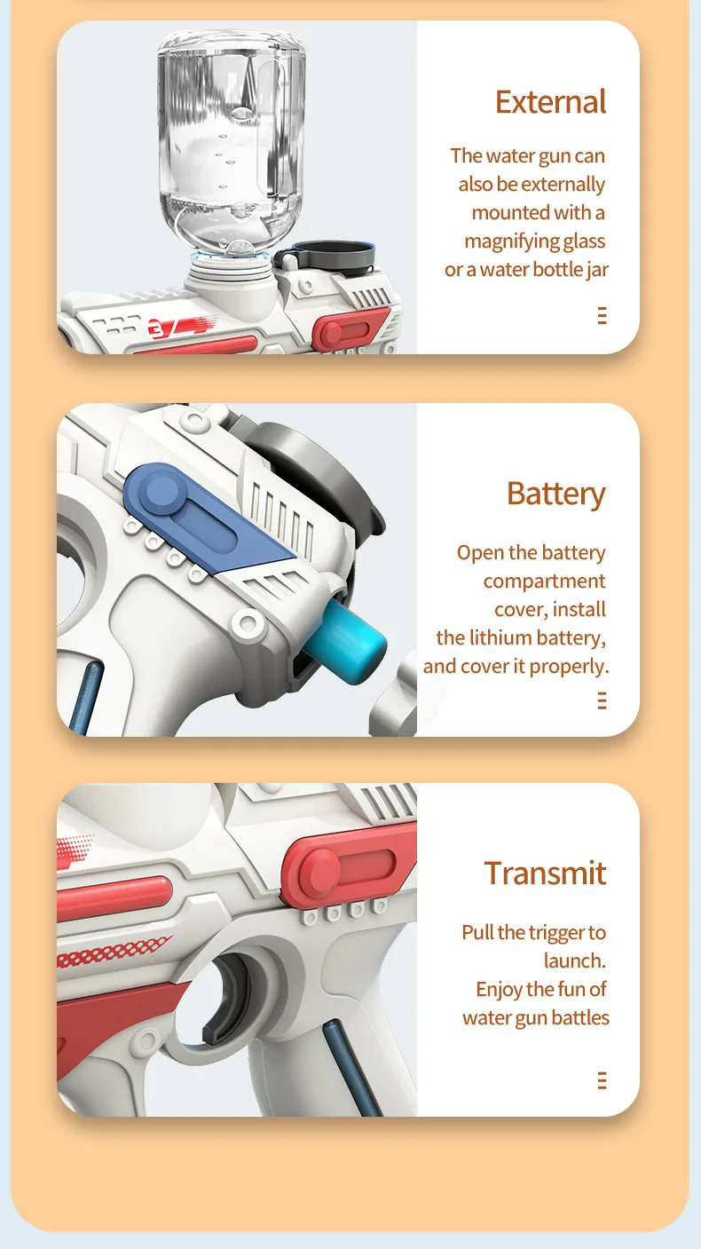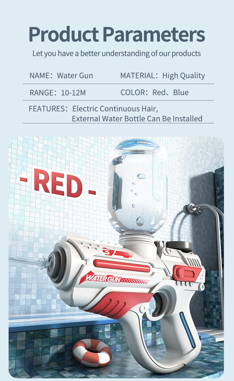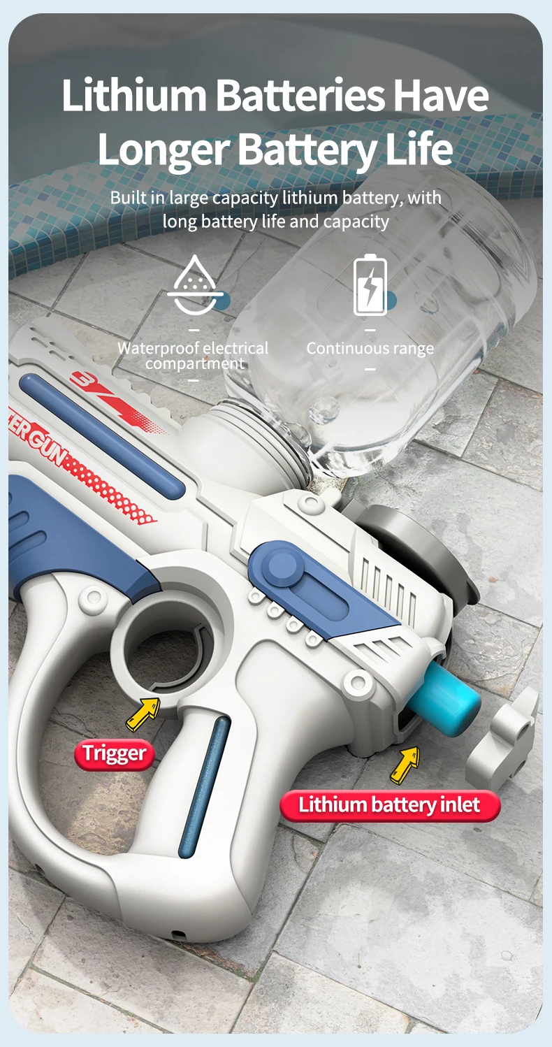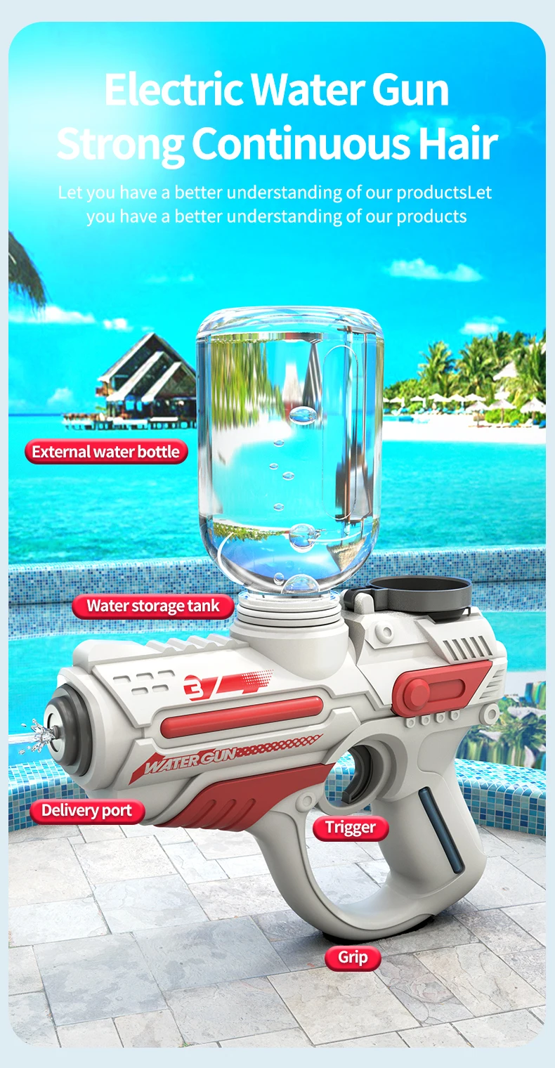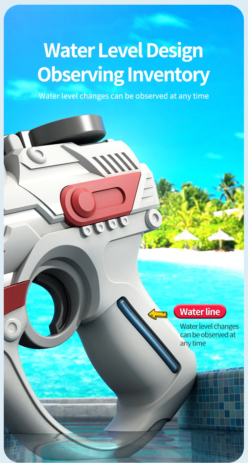 This 2023 electric automatic water gun is designed for high-pressure water play, making it perfect for outdoor, beach, and swimming pool fun. With a large-capacity reservoir, it ensures extended playtime for children, providing a thrilling summer toy experience for boys.
