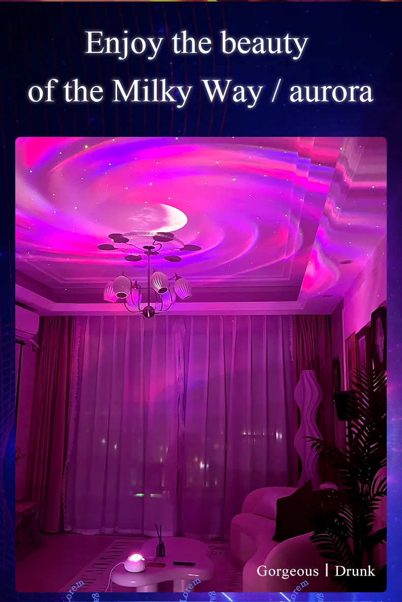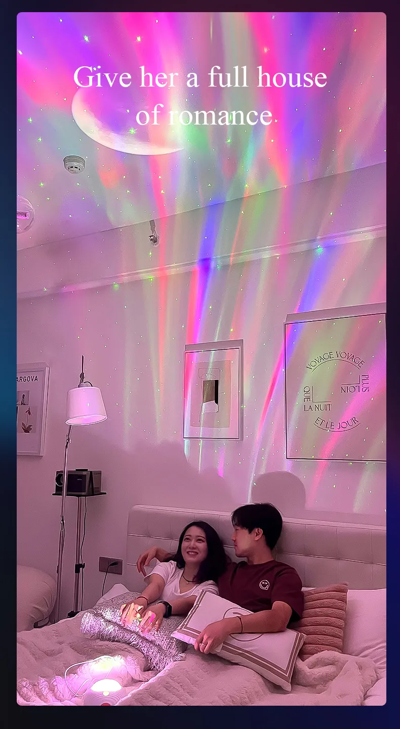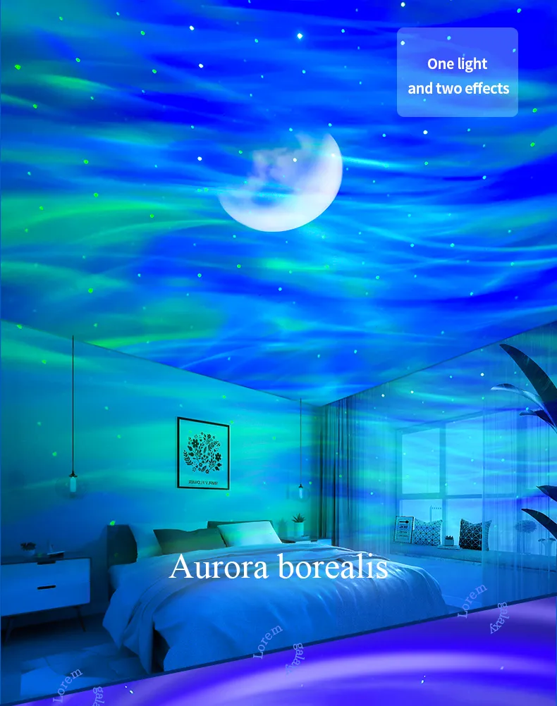 2023 New Double Effect Northern Lights Projector Lamp Milky Way Atmosphere Lamp Starry Sky Lamp White Noise Projector Lamp With Rometes