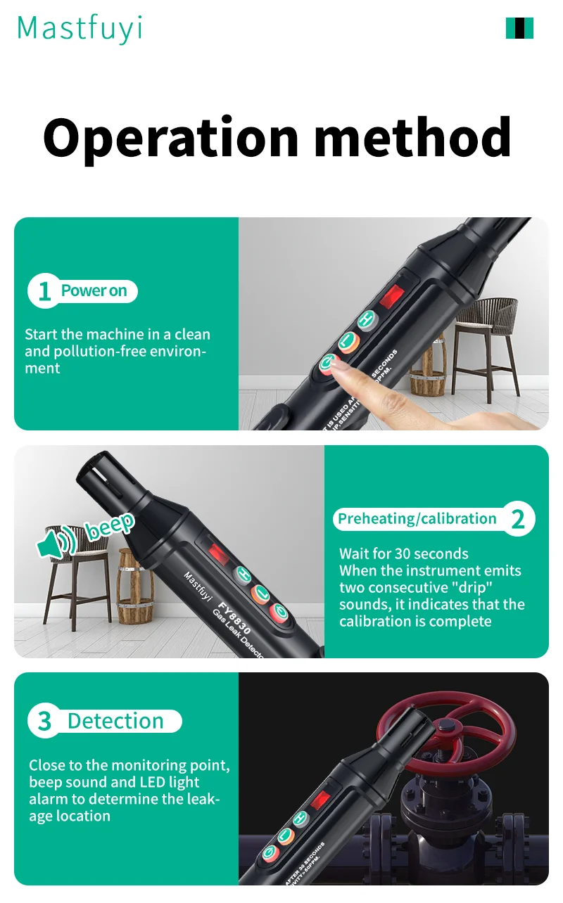 The Mastfuyi FY8830 Combustible Gas Detector is a safe, reliable and efficient choice, whether for domestic use or industrial environments. We are committed to providing our users with the most advanced gas detection technology to ensure that their living and working environment is always at the safest level.