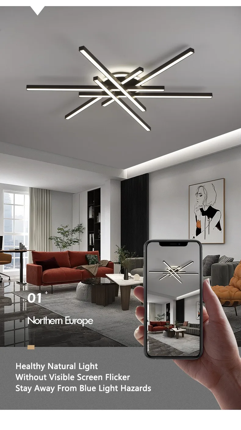 This 2024 Nordic modern LED ceiling lamp is perfect for illuminating living rooms, dining rooms, and bedrooms. Featuring a sleek design, it serves as a stylish chandelier that enhances any modern decor.