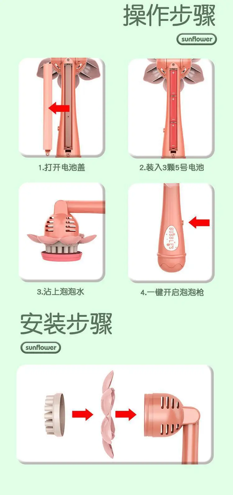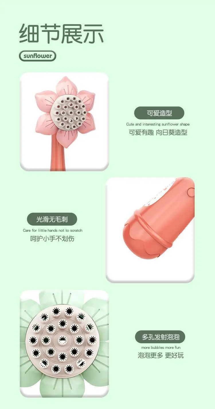 - The bubble gun features an adorable sunflower design that kids will love. Its bright and cheerful appearance makes bubble blowing even more enjoyable for children.