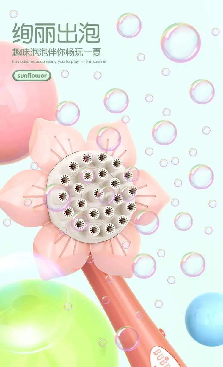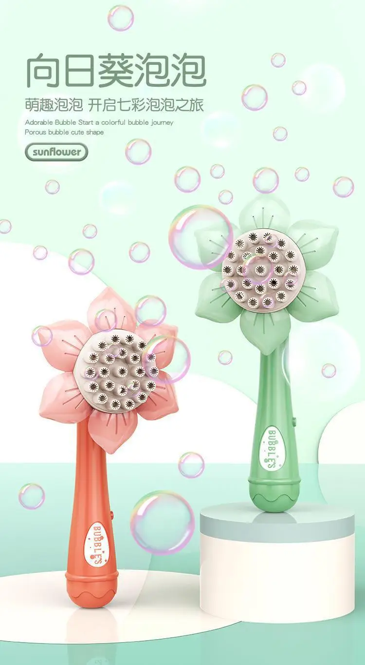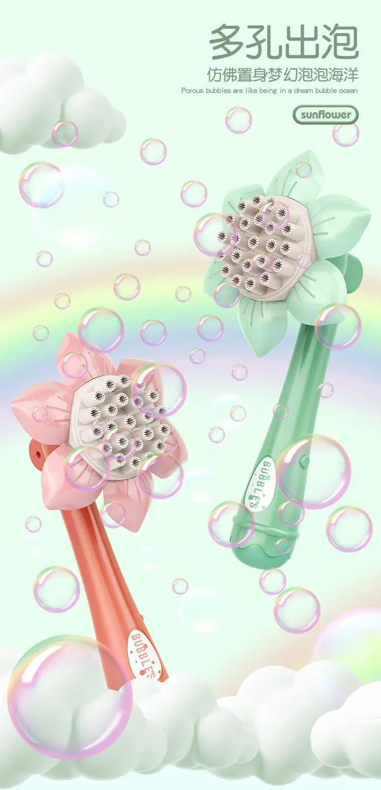 Bring joy to your child's playtime with the 23-Hole Sunflower Bubble Gun - Electric Bubble Machine for Kids. Order now and create unforgettable moments filled with bubbles and laughter. Perfect for enhancing outdoor play and parties.