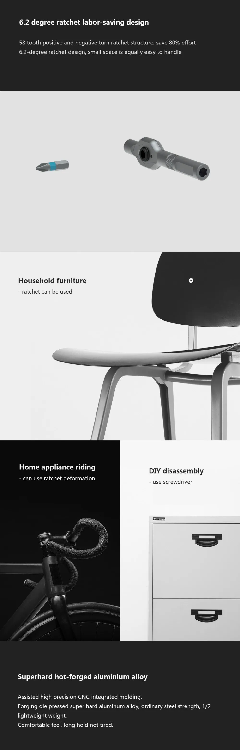 *Economical 6.2 degree ratchet design, 58-tooth forward and reverse ratchet structure, saving 80% of effort *Household furniture-ratchet can