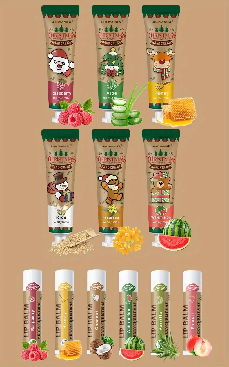 24-Piece Christmas Gift Set — Hand Cream & Lip Balm Duo with Festive Cards + Red Tote (MISS FACTORX)