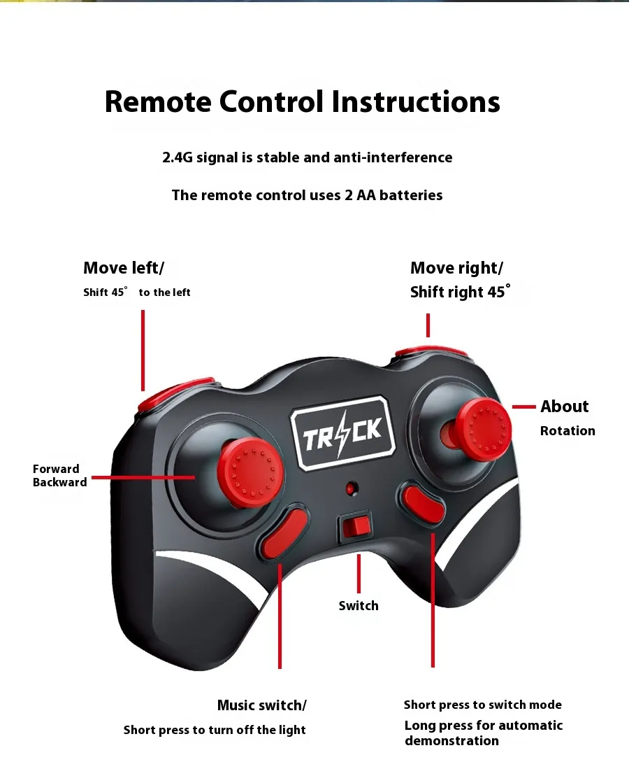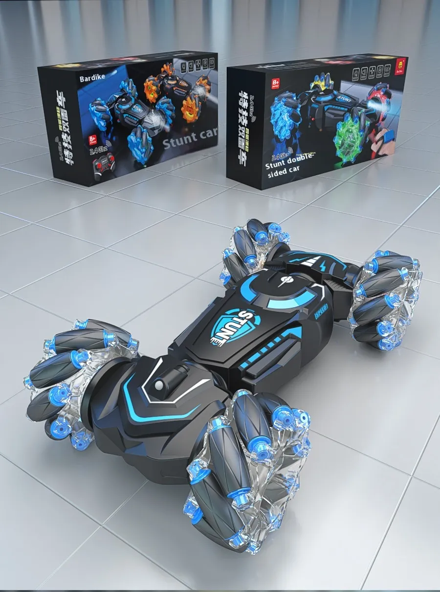 The 24g Charging Stunt Double-Sided Car RC Gesture Remote Control Car Toy is the ultimate toy for kids and RC enthusiasts alike. This dynamic remote-controlled car is designed for thrilling stunt action, offering double-sided driving and impressive gestures that make it a standout choice for fun and entertainment. Whether you're looking to race, flip, or perform stunts, this high-performance toy car delivers non-stop excitement.