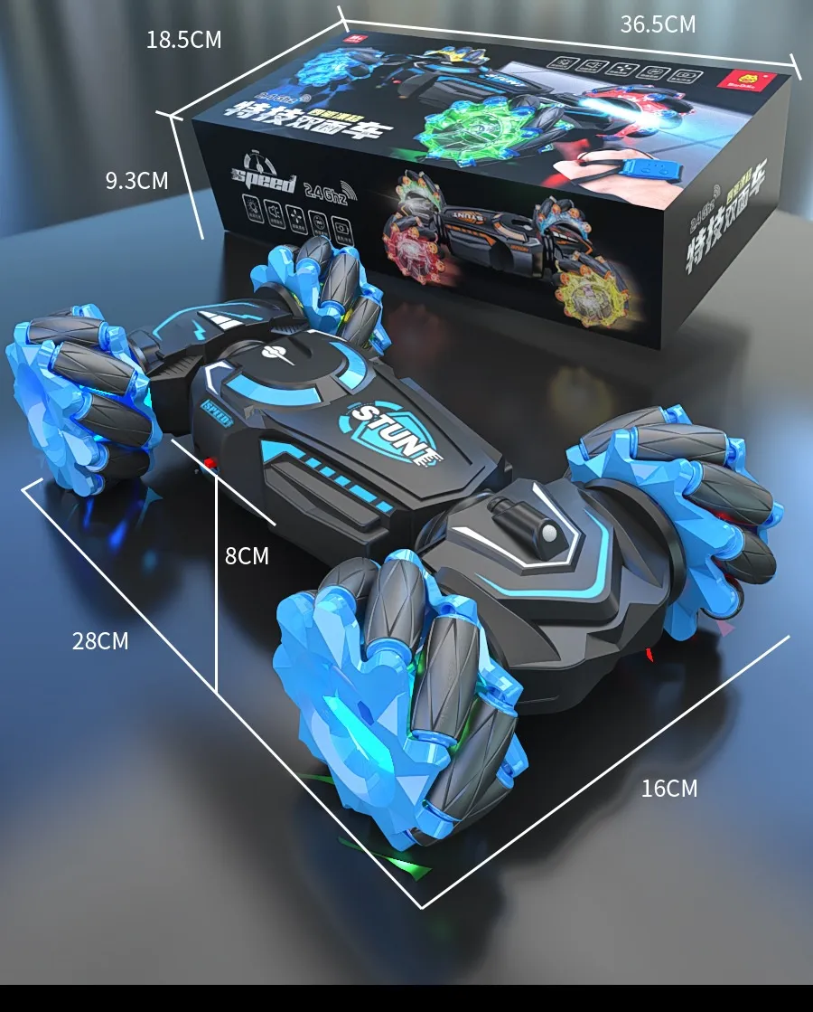 The 24g Charging Stunt Double-Sided Car RC Gesture Remote Control Car Toy is the ultimate toy for kids and RC enthusiasts alike. This dynamic remote-controlled car is designed for thrilling stunt action, offering double-sided driving and impressive gestures that make it a standout choice for fun and entertainment. Whether you're looking to race, flip, or perform stunts, this high-performance toy car delivers non-stop excitement.
