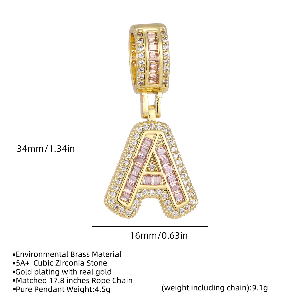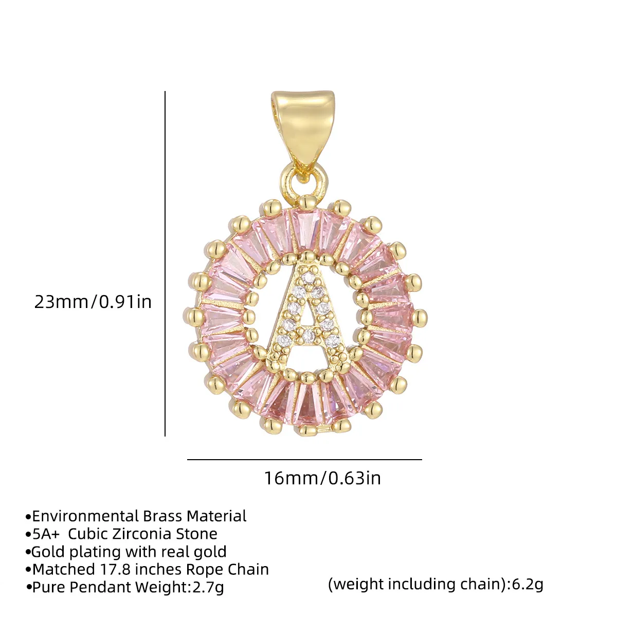 26 Letter Pendant Necklace – Copper Inlaid with Zirconium Plated Real Gold